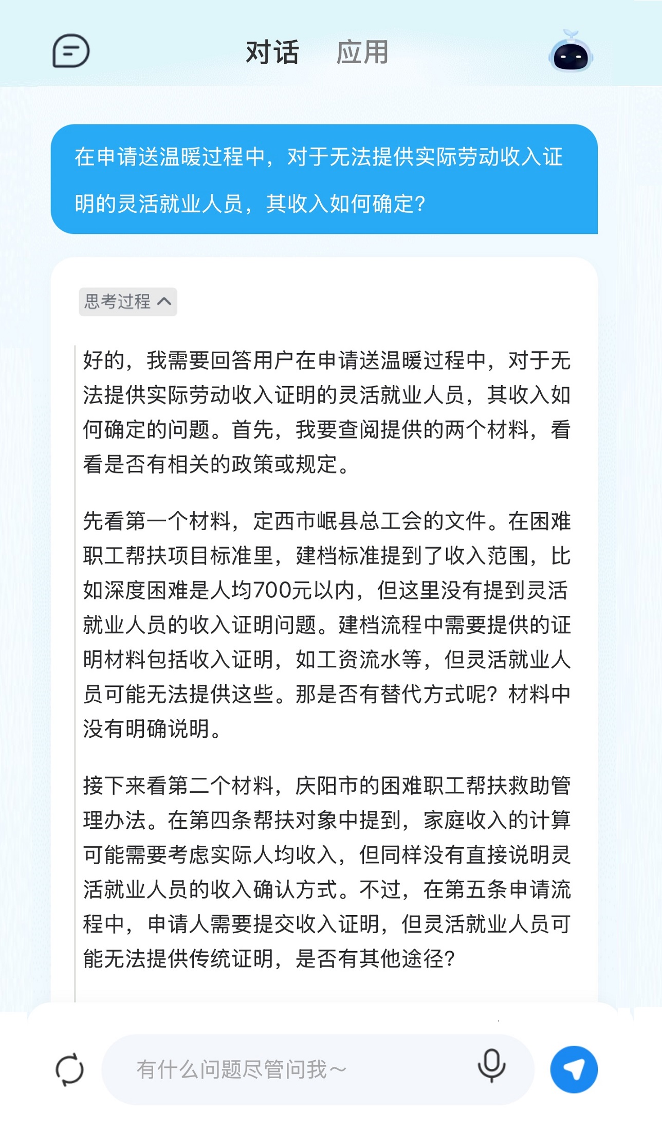 依托DeepSeek大模型的强大自然语言处理能力,AI助手能够精准理解用户意图,快速解答职工关于政策法规、权益保障、福利待遇等方面的疑问,提供个性化、专业化的咨询服务。